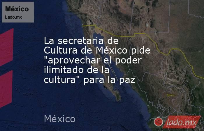 La secretaria de Cultura de México, Claudia Curiel de Icaza, ha llamado este lunes a "aprovechar el poder ilimitado de la cultura" para construir la paz, fortalecer la justicia social y garantizar el bienestar colectivo.