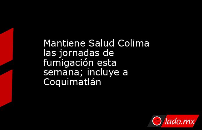 Colima.- La Secretaría de Salud del Gobierno del Estado de Colima llevará a cabo el operativo de fumigación para disminuir la presencia del mosco transmisor del dengue, zika y chikungunya, del lunes 29 de septiembre al viernes 3 de octubre en el que se incluye en esta ocasión al municipio de Coquimatlán.