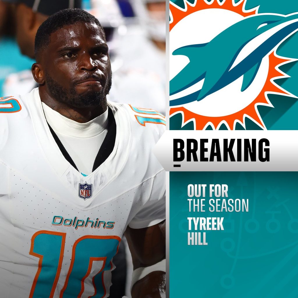 Los Miami Dolphins tendrán que terminar la temporada de la NFL sin Tyreek Hill, quien estará fuera de actividad varios meses para recuperarse de la durísima lesión que sufrió contra los New York Jets.