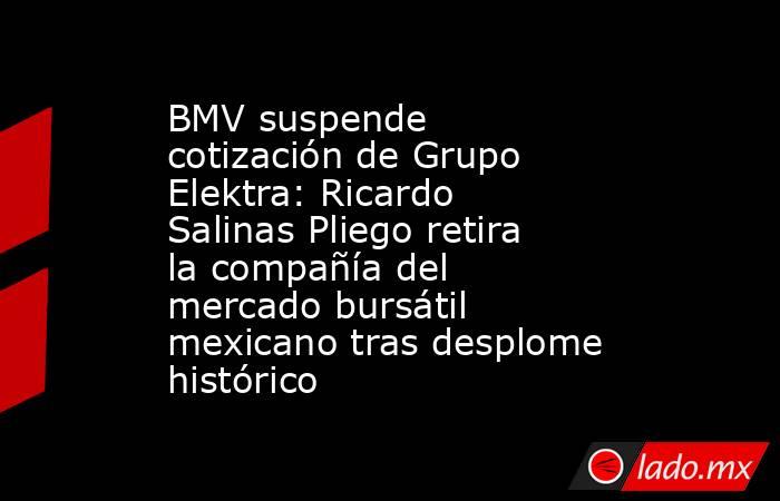 Este martes, la Bolsa Mexicana de Valores (BMV) anunció que suspendía la cotización de títulos representativos del capital social de Grupo Elektra, del magnate Ricardo Salinas Pliego.A través de un comunicado, la Bolsa informó que actuaba considerando la información divulgada por Elektra referente a dejar de mantener sus acciones representat