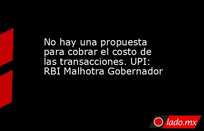 El gobernador de la Reserva Bancaria Sanjay Malhotra el miércoles (1 de octubre de 2025) dijo que no hay una propuesta para cobrar ningún gasto en la transacción UPI.