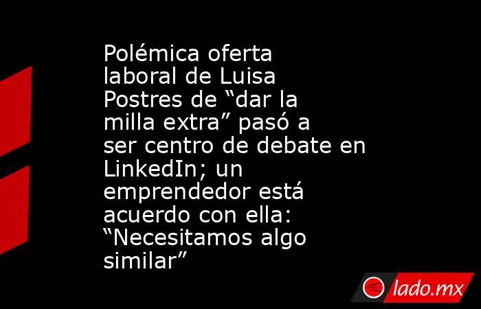 A su vez, otra ciudadana agregó: “Entiendo tu punto y lo comparto en ciertos aspectos pero no por completo. Claramente si hablamos de un emprendedor, que NO nació en cuna de oro, lo entiendo y lo comparto, pero Luisa Postres? Es imposible ignorar que es una persona que NO tiene un emprendimiento, ella tiene una empresa y eso es lo que realmente ofende. Yo he sido CM con toda la “milla extra” qué ella pide, pero justamente creciendo con el verdadero emprendedor que con mucho esfuerzo hemos avanzado juntos".