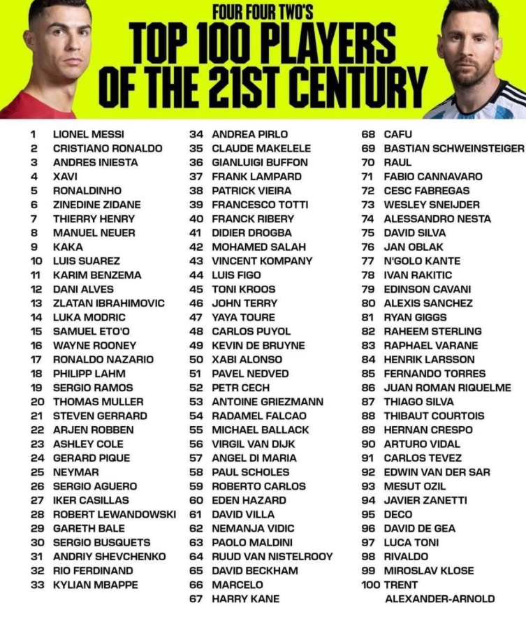 Para la revista, Lionel Messi está por encima de todos los demás y, en la segunda posición, aparece Cristiano Ronaldo.