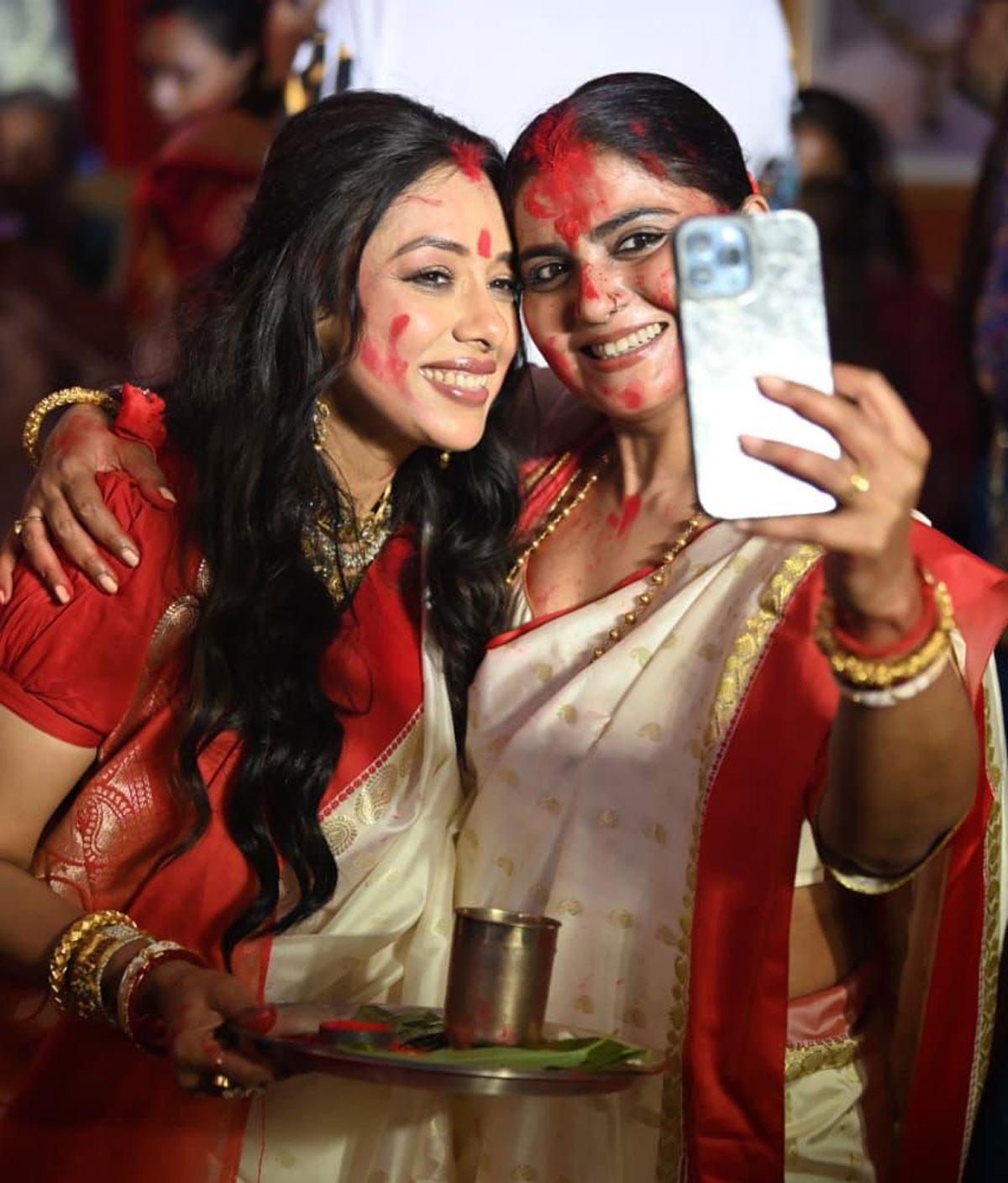 Rupali y Jyoti se toman una selfie.