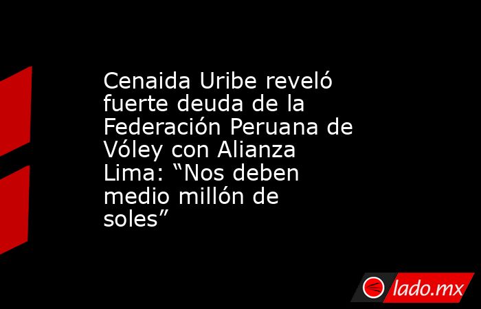 La actual jefa de equipo de Alianza Lima, Cenaida Uribe, reveló públicamente una fuerte deuda que la Federación Peruana de Vóley (FPV) desde hace algunos años con el club ‘íntimo’. En declaraciones brindadas al medio especializado "Puro Vóley’, la exvoleibolista reveló que el monto adeudado asciende a 490 mil soles y criticó duramente al ente presidido por Gino Vegas debido a ciertas obligaciones económicas hacia los equipos de la Liga Nacional en las bases para la nueva temporada.