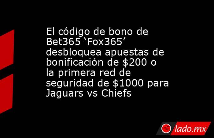 Before Monday Night Football kickoffs between the Jacksonville Jaguars (3-1) and Kansas City Chiefs (2-2), unlock $200 with bet365 and use the bonus code ‘FOX365’.