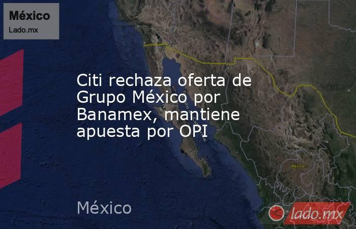 El estadounidense Citigroup dijo el jueves que ha comunicado al conglomerado minero y de transportes Grupo México que rechaza su oferta por su unidad minorista local Banamex, después de evaluar cuidadosamente la propuesta.