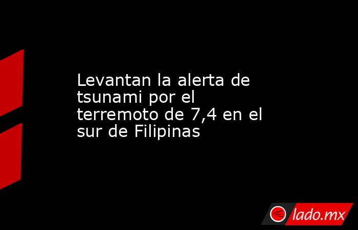 Manila, 10 oct (EFE).- El Centro de Alerta de Tsunamis del Pacífico y la agencia sismológica de Filipinas (Phivolcs) levantaron este viernes la alerta de tsunami activada previamente por el terremoto de magnitud 7,4 que sacudió hoy el sur de Filipinas, que ha causado al menos un fallecido por el momento.