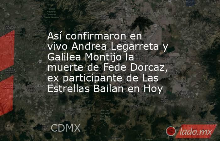 CIUDAD DE MÉXICO.- Durante la transmisión matutina de este viernes, el programa Hoy informó el fallecimiento del cantante y modelo argentino Fede Dorcaz, quien estaba contemplado como participante de la nueva temporada de Las Estrellas Bailan en Hoy. La noticia fue dada a conocer por las conductoras Andrea Legarreta y Galilea Montijo, quienes visiblemente consternadas compartieron los detalles del lamentable suceso.