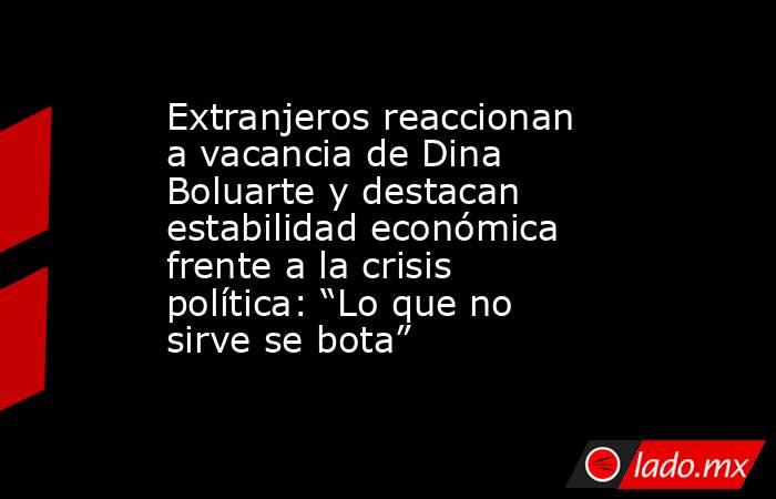 Para numerosos extranjeros, el episodio ejemplificó la capacidad del sistema democrático peruano para sustituir a sus líderes con rapidez, algo inusual en países con regímenes autoritarios o estructuras políticas rígidas. Varios medios remarcaron que, aunque los cambios de gobierno son frecuentes, la economía peruana mantiene estabilidad, un contraste llamativo con la profundidad de la crisis política.