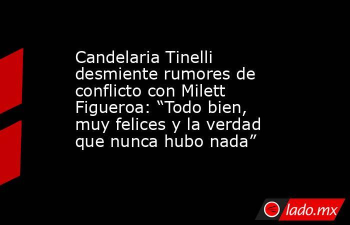 “Todo bien, más que bien, muy felices y la verdad que nunca hubo nada”. Con esta frase, Candelaria Tinelli, hija del reconocido conductor argentino Marcelo Tinelli, desmintió de forma categórica los rumores sobre una supuesta mala relación con Milett Figueroa, pareja de su padre.