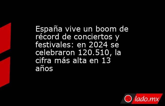 En 2024 se celebraron 120.510 conciertos de música popular en España, la cifra más alta desde 2011 —el dato excluye los conciertos que forman parte de macrofestivales y grandes eventos, que se registran por separado—. A estas actuaciones asistieron 25,9 millones de personas, un 19% más que el año anterior y un 32% más que en 2019, antes de la pandemia. La recaudación total alcanzó los 320,5 millones de euros, el mejor resultado de la serie desde 2008.