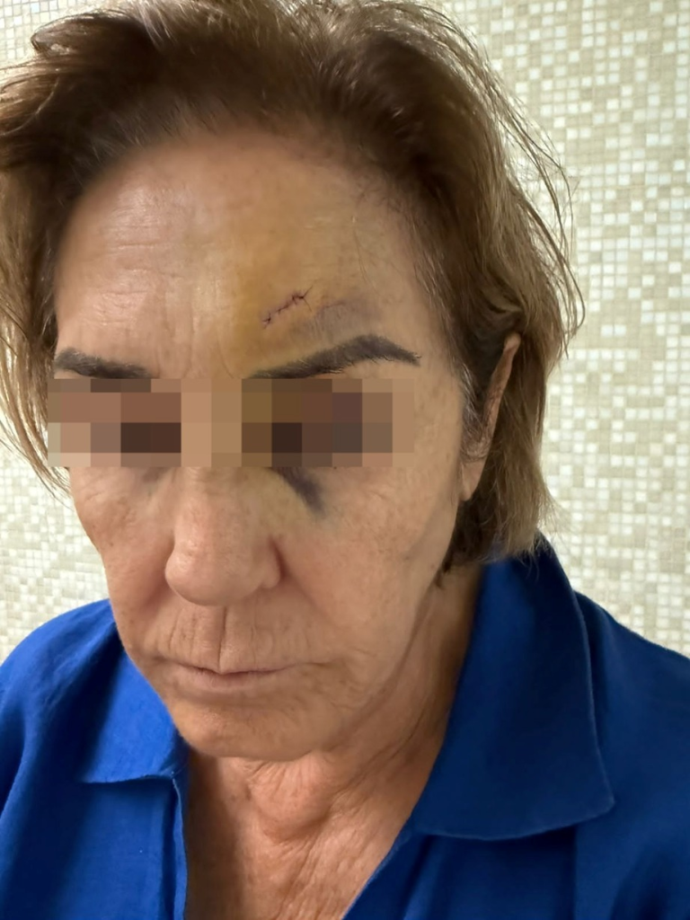 Mientras esperaban la atención médica, la situación se tornó tensa. Según relató la denunciante, los hijos comenzaron a insultarla y responsabilizarla por el estado de salud de su padre. En medio de los gritos, Rodrigo Z., de alrededor de 50 años, la golpeó en la cabeza, provocándole una herida profunda sobre el ojo que requirió suturas realizadas por un cirujano plástico.