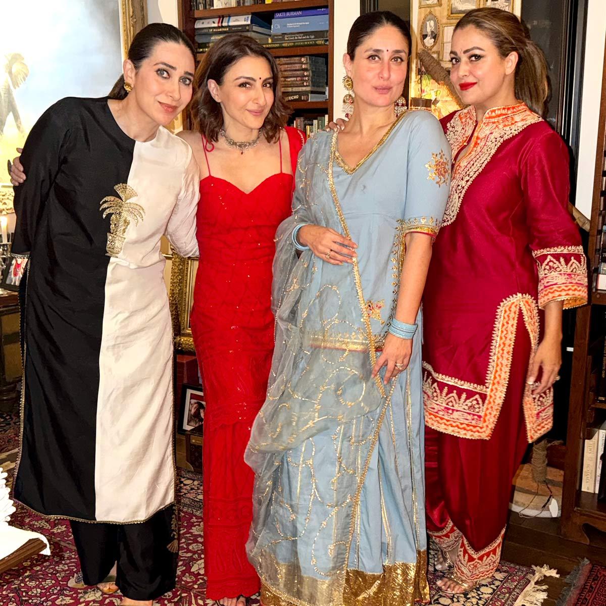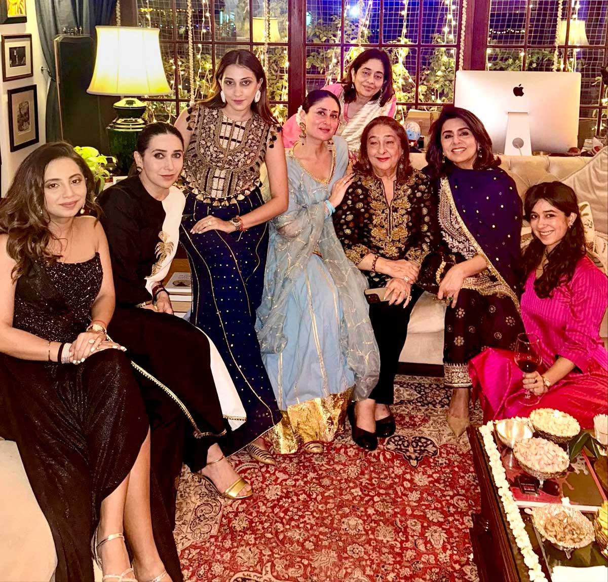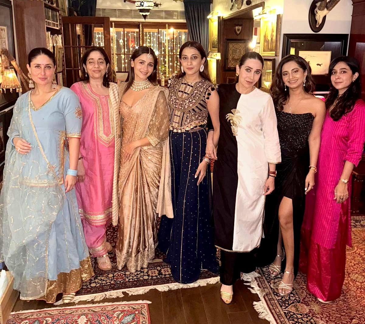 Pandilla de chicas: Kareena, Nitasha NandaRitu Nanda, cuya madre era la hija mayor de Raj Kapoor, Alia Bhatt, Anisa Malhotra Jaincarisma, Alekha Advani Jaincuya suegra Reema Jain era la hija menor de Raj Kapoor, y Shaira Kapoorcuyo abuelo Shashi Kapoor era el hermano menor de Raj Kapoor.