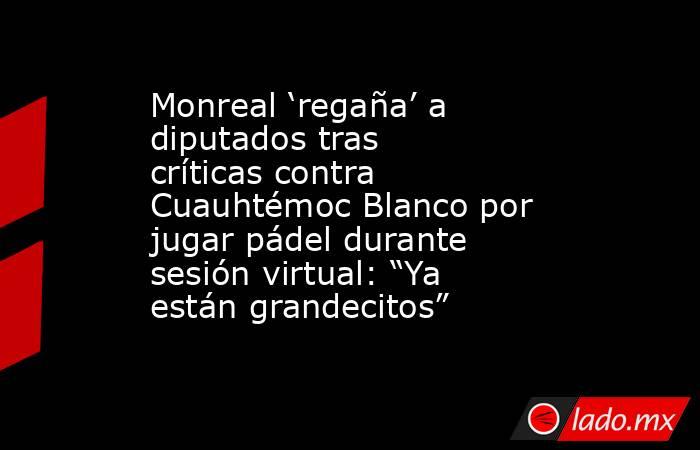 Ricardo Monreal, coordinador de Morena y presidente de la Junta de Coordinación Política (JUCOPO) en la Cámara de Diputados, hizo un llamado a los legisladores a cumplir con su responsabilidad laboral, tras las críticas en contra de Cuauhtémoc Blanco por participar en una sesión virtual para votar por la Ley de Aguas Nacionales, mientras jugaba pádel.