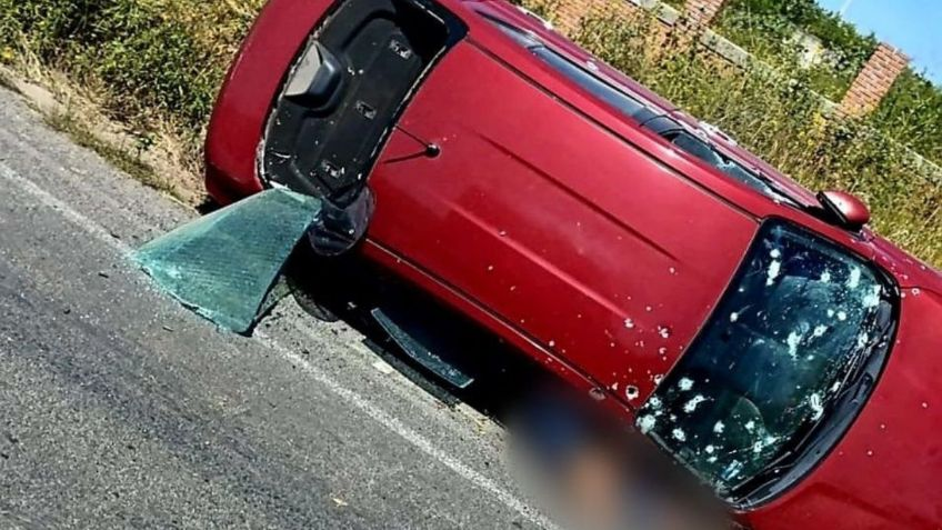La camioneta terminó volcada a un costado de la vía con más de 30 impactos en el parabrisas, el vidrio trasero destrozado y daños en la ventanilla del lado del conductor y en el techo.