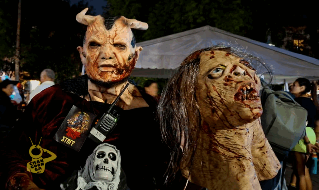 Alrededor de las 8:30 de la noche, los “zombies rápidos” hicieron su aparición, persiguiendo simbólicamente a los pocos “supervivientes” que intentaban llegar al “centro seguro”, entre risas y sustos simulados.