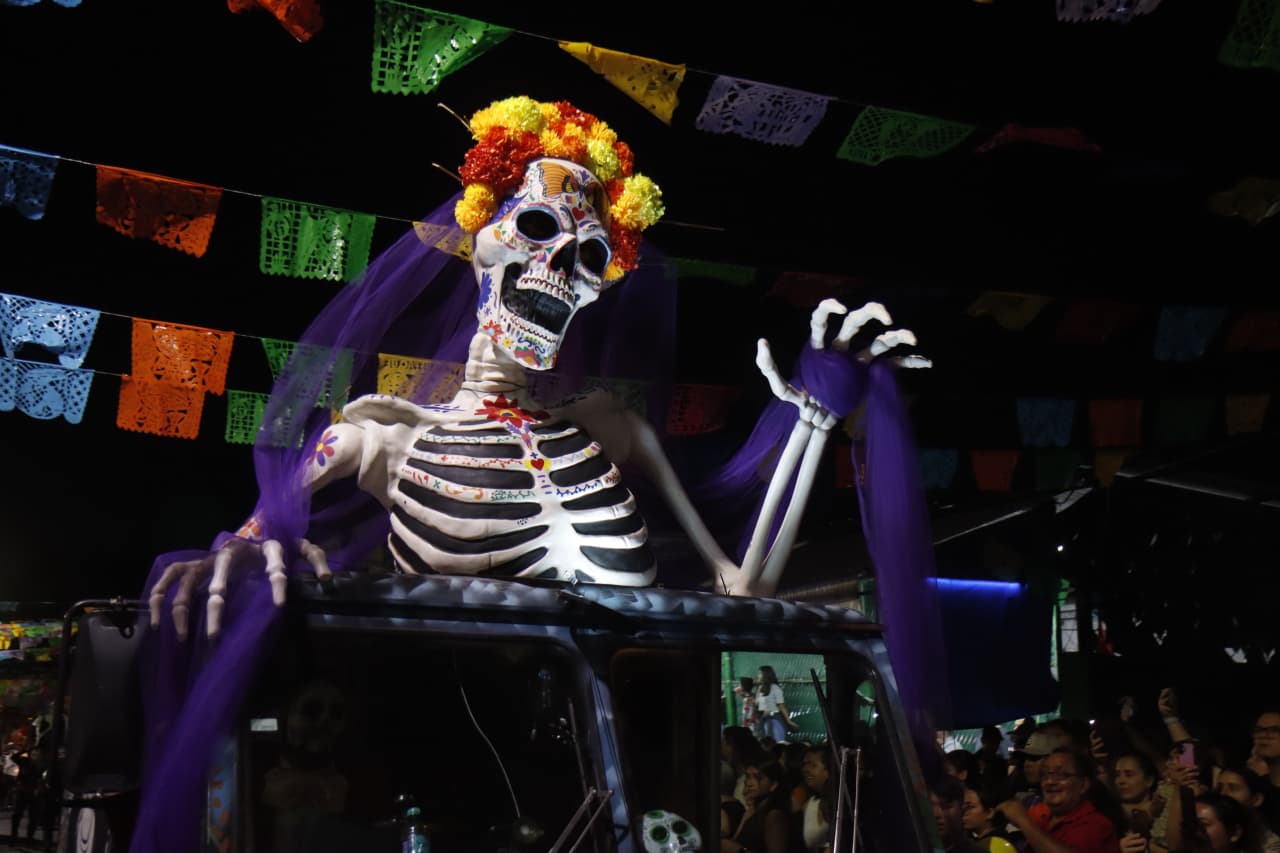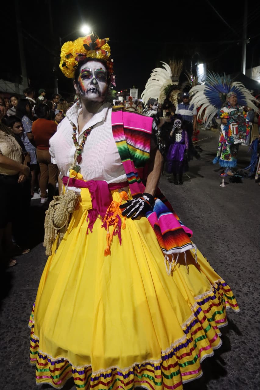 Participaron más de 600 personas, entre instituciones educativas, colectivos culturales, artistas locales, empresarios, asociaciones y familias del municipio, quienes lucieron catrinas, catrines, calaveras monumentales, carruajes y carros alegóricos.