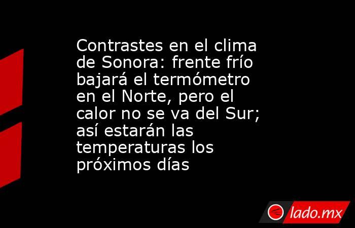 HERMOSILLO, Sonora.- Mientras un nuevo frente frío en Sonora generará un descenso en las temperaturas máximas en el Norte del Estado, en algunos municipios de las zonas cálidas el termómetro podría alcanzar los 40°C, según datos del Servicio Meteorológico Nacional (SMN).