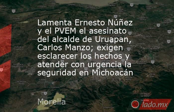 El dirigente estatal del Partido Verde Ecologista de México (PVEM) y diputado federal, Ernesto Núñez Aguilar, lamentó profundamente el asesinato del presidente municipal de Uruapan, Carlos Manzo, ocurrido esta noche en el Centro de esa ciudad.
