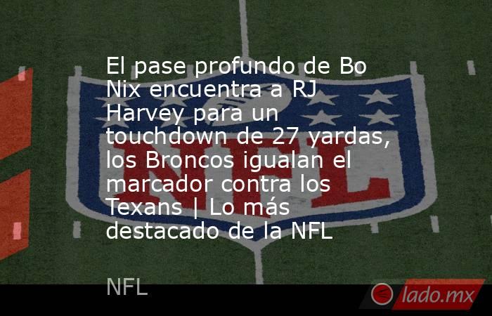 El pase profundo de Bo Nix conectó con el corredor RJ Harvey para un touchdown de 27 yardas. Los Denver Broncos igualaron el marcador ante los Houston Texans