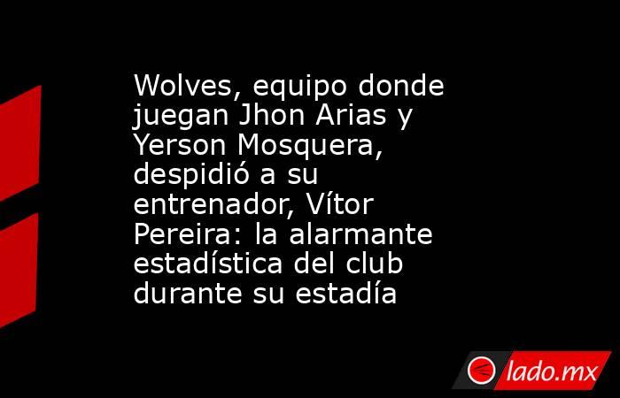La reciente goleada sufrida ante Fulham (3-0) marcó el final de la etapa de Vitor Pereira al frente de la dirección técnica de Wolverhampton, equipo en el que militan los colombianos Jhon Arias y Yerson Mosquera.