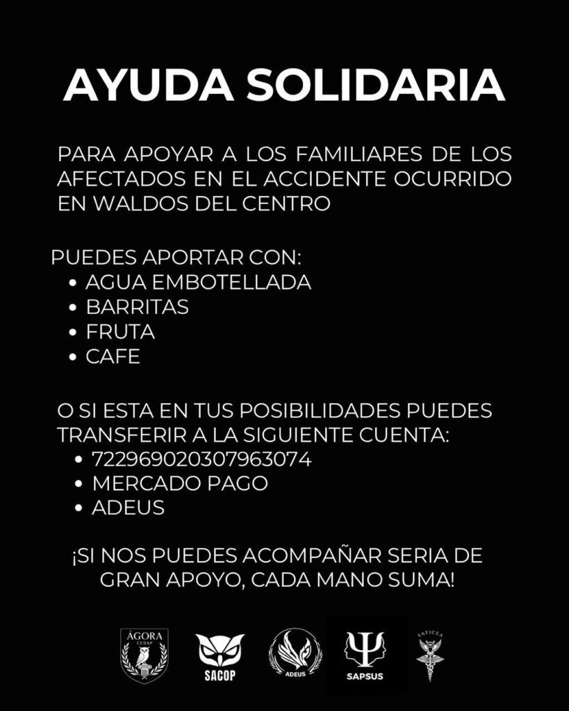 También se puso a disposición la cuenta 722969020307963074 de Mercado Pago, a nombre de ADEUS, para quienes deseen realizar una aportación económica.
