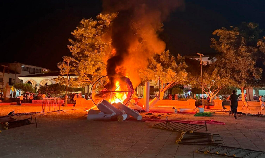 La Plaza Constituyentes, un espacio de convivencia, también fue blanco de la furia ciudadana, con actos de vandalismo, destrozos e incendios en lo que momentos horas eran ofrendas por el día de muertos.