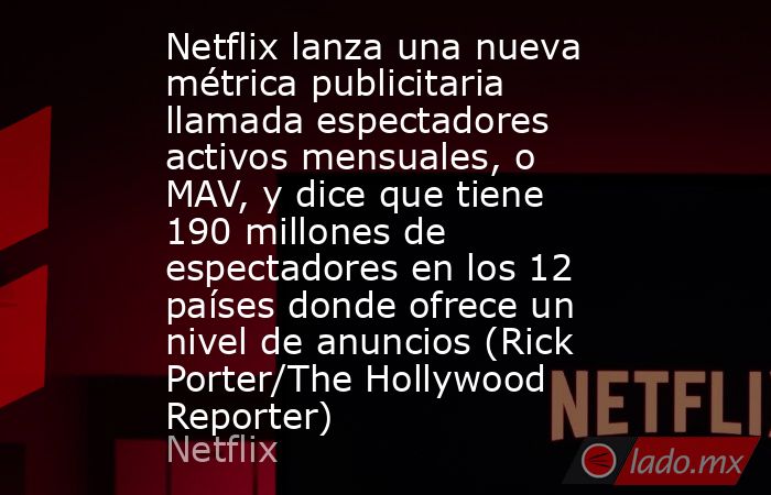 Netflix lanza una nueva métrica publicitaria llamada espectadores activos mensuales, o MAV, y dice que tiene 190 millones de espectadores en los 12 países donde ofrece un nivel de anuncios. – El transmisor está implementando una estadística que llama a los espectadores activos mensuales. – Netflix está implementando una nueva métrica publicitaria que dice muestra…