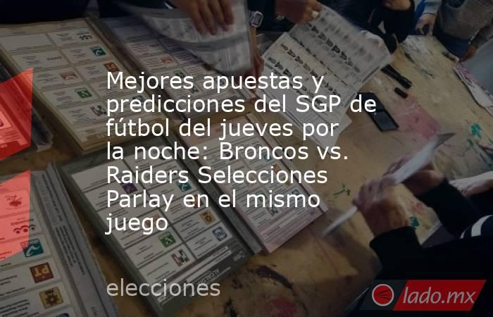 Parlay en el mismo juego ¿A qué modelo superior de TNF deberías apuntar con tus predicciones de Raiders vs. Broncos? Visite SportsLine ahora para ver el SGP de fútbol del jueves por la noche basado en el modelo de aprendizaje automático de SportsLine. y buscar