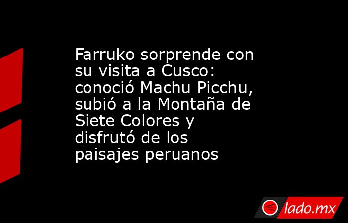 El reconocido cantante urbano Farruko sorprendió a sus millones de seguidores al compartir imágenes y reflexiones de su reciente viaje a Cusco, donde exploró algunos de los destinos más emblemáticos del Perú. El artista puertorriqueño visitó Machu Picchu, la Montaña de Siete Colores y pueblos tradicionales andinos, viviendo de cerca la conexión espiritual y cultural que caracteriza a esta región.