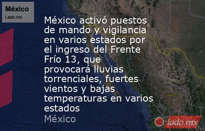 El Servicio Meteorológico Nacional (SMN) alertó este sábado sobre la entrada del Frente Frío número 13, impulsado por una masa de aire ártica que afectará gran parte del territorio mexicano con lluvias torrenciales, rachas de viento intenso y un marcado descenso de temperatura.
