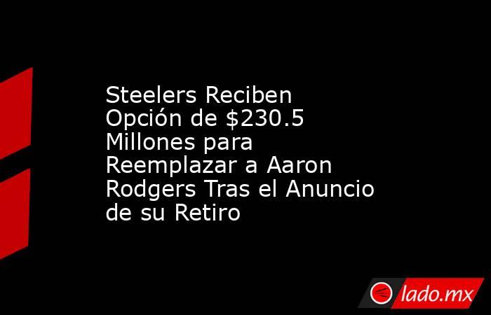 El cargo Steelers Reciben Opción de $230.5 Millones para Reemplazar a Aaron Rodgers Tras el Anuncio de su Retiro apareció primero en Trastitulares.com.