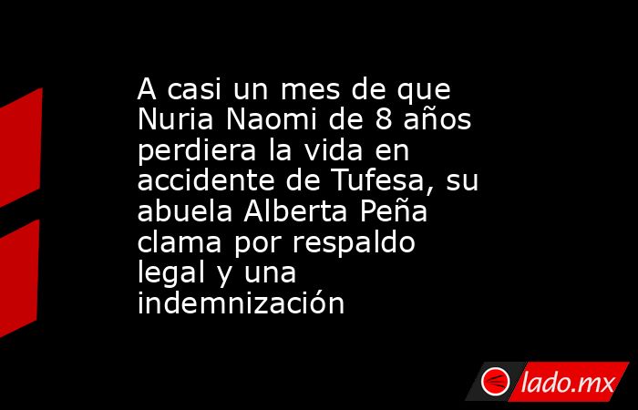 A casi un mes de la muerte de su nieta Nuria Naomi, de 8 años de edad, quien viajaba en el camión de Tufesa volcado, Alberta Peña Antonio exige justicia a las autoridades de Sonora y que la ayuden a conseguir una indemnización.