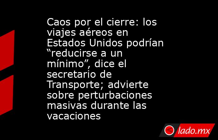 “Los viajes aéreos se van a reducir a un mínimo ya que todos quieren viajar para ver a sus familias”, dijo Duffy a Fox News el domingo, advirtiendo que el impacto empeorará a medida que se acerque la temporada navideña de Acción de Gracias.El cierre, que ya llega a su sexta semana, ha obligado a las agencias federales a permanecer prácticamente paralizadas, y muchos empleados gubernamentales, incluido el personal de seguridad aeroportuaria y de control de tráfico, han sido suspendidos o trabajando sin remuneración mientras se prolonga el enfrentamiento político entre republicanos y demócratas.“Vamos a ver muy pocos controladores de tráfico aéreo viniendo a trabajar, lo que significa que sólo un puñado de vuelos despegarán y aterrizarán”, dijo Duffy. “Va a haber una perturbación masiva y muchos estadounidenses enojados”.En su aparición más tarde en el programa “State of the Union” de CNN, Duffy advirtió que la situación podría deteriorarse aún más si el estancamiento presupuestario no se resuelve pronto.“Sólo va a empeorar”, dijo. “Muchas personas no podrán subirse a un avión, porque no habrá tantos vuelos si esto no se vuelve a abrir”.El cierre continuo ha generado preocupación entre las aerolíneas y los sindicatos sobre la seguridad de los pasajeros, los cuellos de botella en los horarios y las pérdidas económicas, y los analistas estiman miles de millones de dólares en pérdida de productividad en los sectores de la aviación y el turismo.La Administración Federal de Aviación (FAA) ha dicho que está dando prioridad a los servicios esenciales, pero el ausentismo generalizado entre el personal ya ha provocado tiempos de espera más prolongados, retrasos en las rutas y una capacidad reducida.