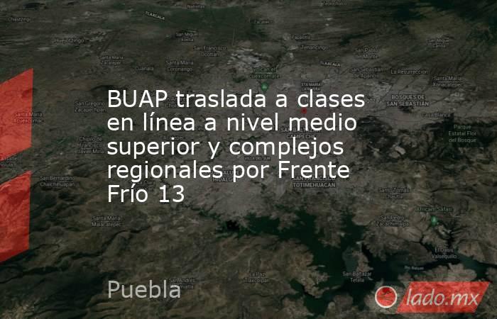 La Benemérita Universidad Autónoma de Puebla (BUAP) informó que, debido a las bajas temperaturas provocadas por el Frente Frío número 13, este lunes 10 de noviembre las clases se impartirán en modalidad en línea para los estudiantes del nivel medio superior —que incluye preparatorias y bachilleratos—, así como en los Complejos Regionales de la institución.