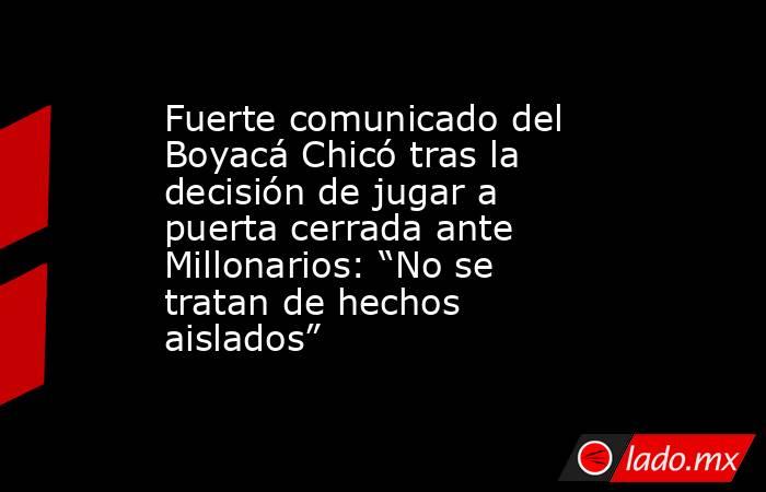Fuerte comunicado del Boyacá Chicó tras la decisión de jugar a puerta cerrada ante Millonarios: “No se tratan de hechos aislados” Infobae