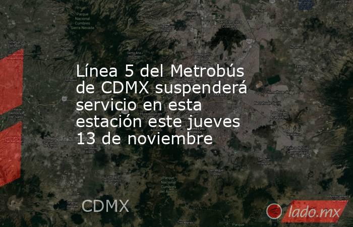 Señaló que una de las estaciones de la Línea 5 del Metrobús de la Ciudad de México cerrará este próximo jueves 13 de noviembre.