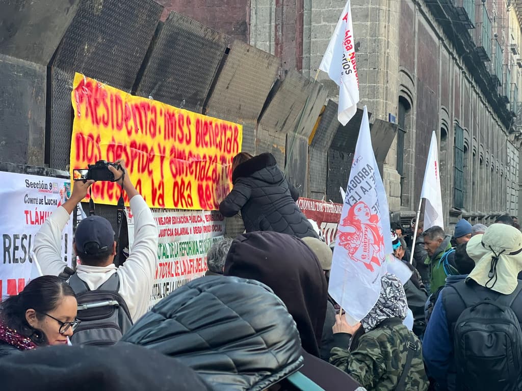 Integrantes de la Coordinadora Nacional de Trabajadores de la Educación (CNTE) realizaron un plantón frente a Palacio Nacional, donde se encontraron con un cerco metálico instalado por las autoridades.