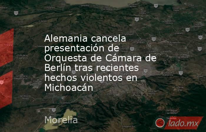 The post Alemania cancela presentación de Orquesta de Cámara de Berlín tras recientes hechos violentos en Michoacán appeared first on Proyecto Puente.