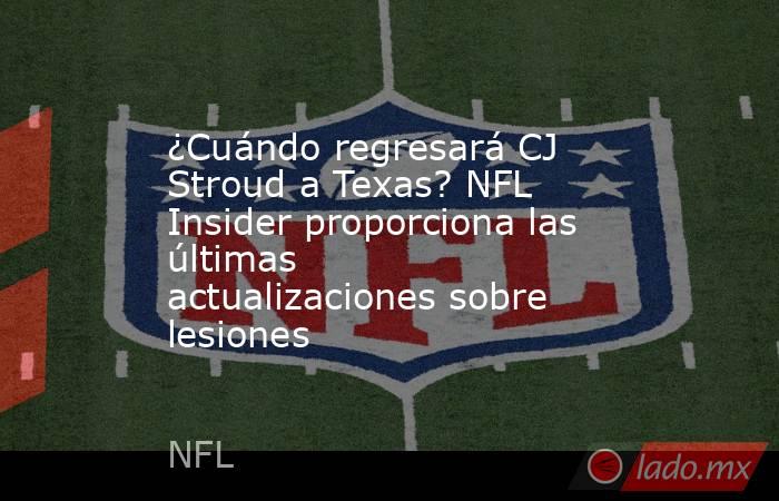 Según ESPN, la disponibilidad del mariscal de campo de los Houston Texans, CJ Stroud, es “incierta” para el partido de la Semana 12 del próximo jueves contra los Buffalo Bills. Adam Schefter.