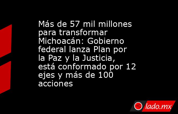 CDMX.- La Presidenta de México, Claudia Sheinbaum Pardo, presentó este domingo el Plan Michoacán por la Paz y la Justicia, acompañada de su gabinete legal y ampliado, en el patio de Palacio Nacional. La mandataria explicó que el programa está conformado por 12 ejes y más de 100 acciones que contemplan una inversión superior a los 57 mil millones de pesos, gran parte de ellos mediante esquemas mixtos.
