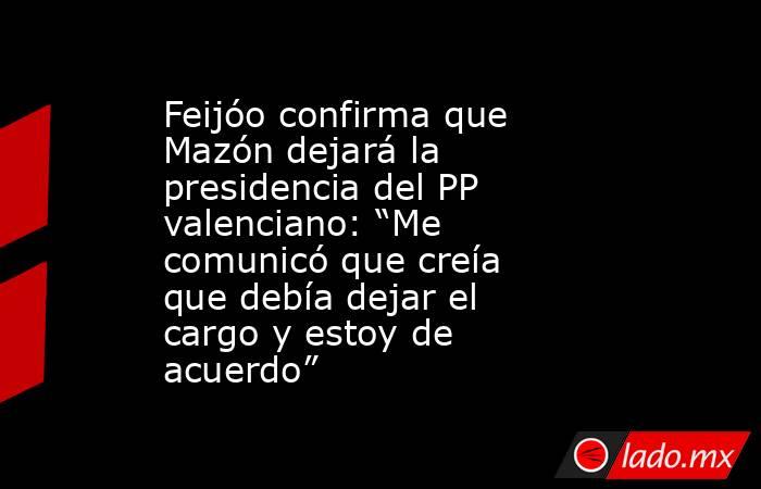 El líder del PP ha confirmado que Carlos Mazón también dejará el cargo de presidente del partido en Comunidad Valenciana. En declaraciones a los medios en el evento Metafuturo de Atresmedia, como recoge EFE, Feijóo ha reconocido que el todavía presidente en funciones le comunicó que iba a dejar el puesto y que él está de acuerdo con la decisión. De momento, habrá que esperar para dar por sentado su sustituto.