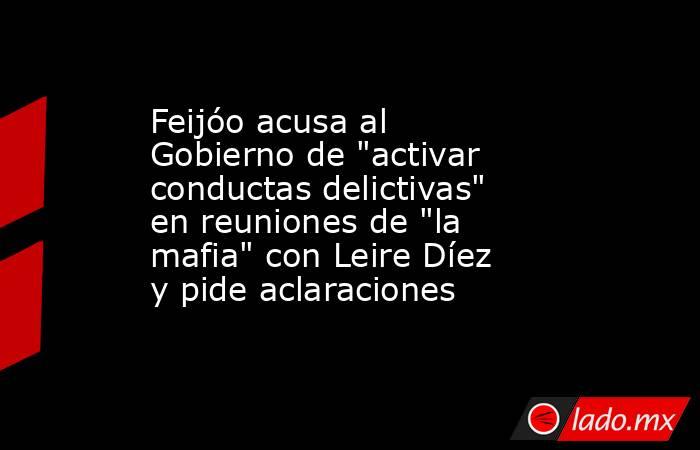 El líder del PP, Alberto Núñez Feijóo, ha acusado este martes a Presidencia del Gobierno de "activar conductas delictivas" contra jueces, fiscales y Guardia Civil en las reuniones de "la mafia" a la que asistía la exmilitante del PSOE Leire Díaz. Por eso, ha urgido al Ejecutivo a ofrecer explicaciones de manera inmediata.