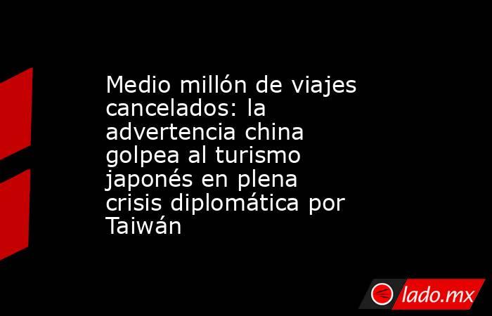 Alrededor de 500.000 boletos aéreos con destino a Japón han sido cancelados por pasajeros chinos tras la advertencia de Beijing de evitar viajes al archipiélago nipón, informó este martes un analista de aviación a la AFP, en medio de una creciente disputa diplomática entre las dos mayores economías de Asia.