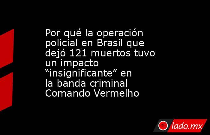Por qué la operación policial en Brasil que dejó 121 muertos tuvo un impacto “insignificante” en la banda criminal Comando Vermelho La Opinión