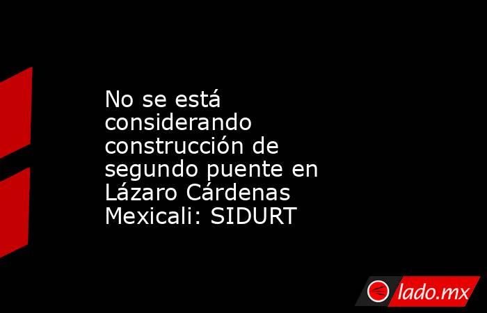 MEXICALI. El secretario de Infraestructura, Desarrollo y Reordenación Territorial (SIDURT), Arturo Espinoza Jaramillo, confirmó que para 2026 no está contemplada la construcción del segundo puente en el paso a desnivel de Lázaro Cárdenas y Venustiano Carranza en Mexicali, pese a que se requieren 230 millones de pesos para concluir los trabajos.