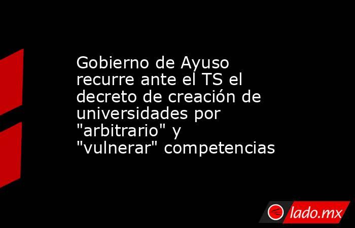 El Gobierno de Isabel Díaz Ayuso ha interpuesto ante el Tribunal Supremo un recurso contencioso-administrativo contra el real decreto de creación, reconocimiento y autorización de centros universitarios del Ejecutivo central al considerarlo "arbitrario" y por "vulnerar" las competencias autonómicas.