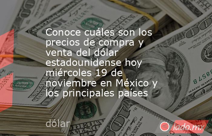 Conoce cuáles son los precios de compra y venta del dólar estadounidense hoy miércoles 19 de noviembre en México y los principales países. Noticias en tiempo real 19 de Noviembre, 2025 14:30