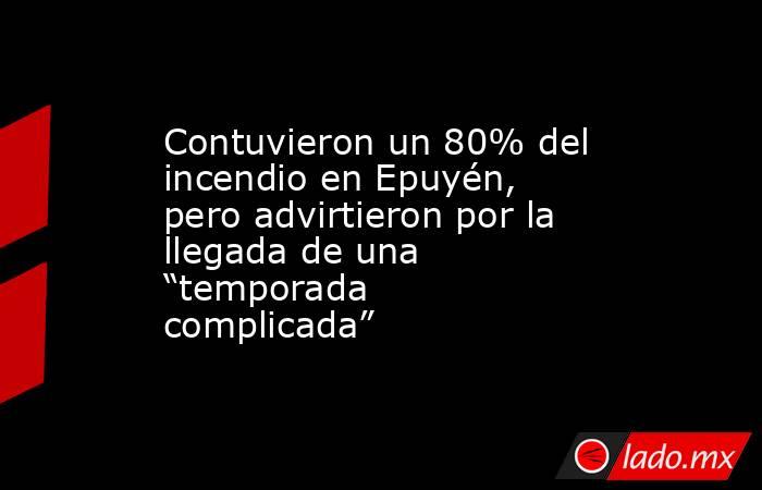 El incendio en Epuyén, provincia de Chubut, que afecta al sector de El Pedregoso logró ser contenido en un 80 por ciento producto de las tareas de contención que se desarrollaron durante la jornada del miércoles. Aunque aseguraron que el foco tendría bajas probabilidades de expandirse, las autoridades alertaron por la llegada de una “temporada complicada” para la región.